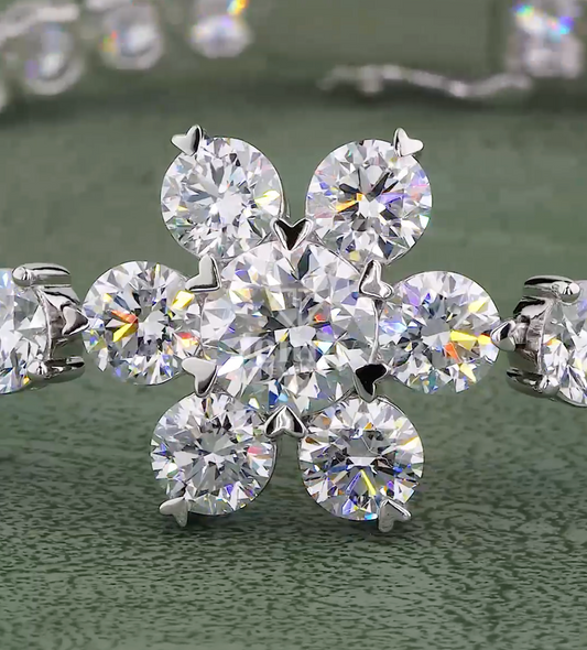 15.64 CT Round Lab-Grown Diamond Floral Cluster Bracelet in 10K / 14K / 18K Gold or Platinum | EF-VVS Luxury Diamond Bracelet