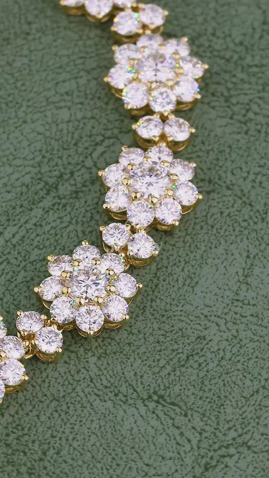 13.68 CT Round Lab-Grown Diamond Sunflower Cluster Bracelet in 10K / 14K / 18K Gold or Platinum | EF-VVS Luxury Diamond Bracelet